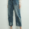 Our Free Spirit Barrel Jeans give a perfect, slouchy, lived-in look. They feature a tapered barrel silhouette and can be worn low-waisted due to the oversized fit. The pants also have a corded drawstring waist, are crop length, and have deep pockets. They are ankle length on a 5'6" person.